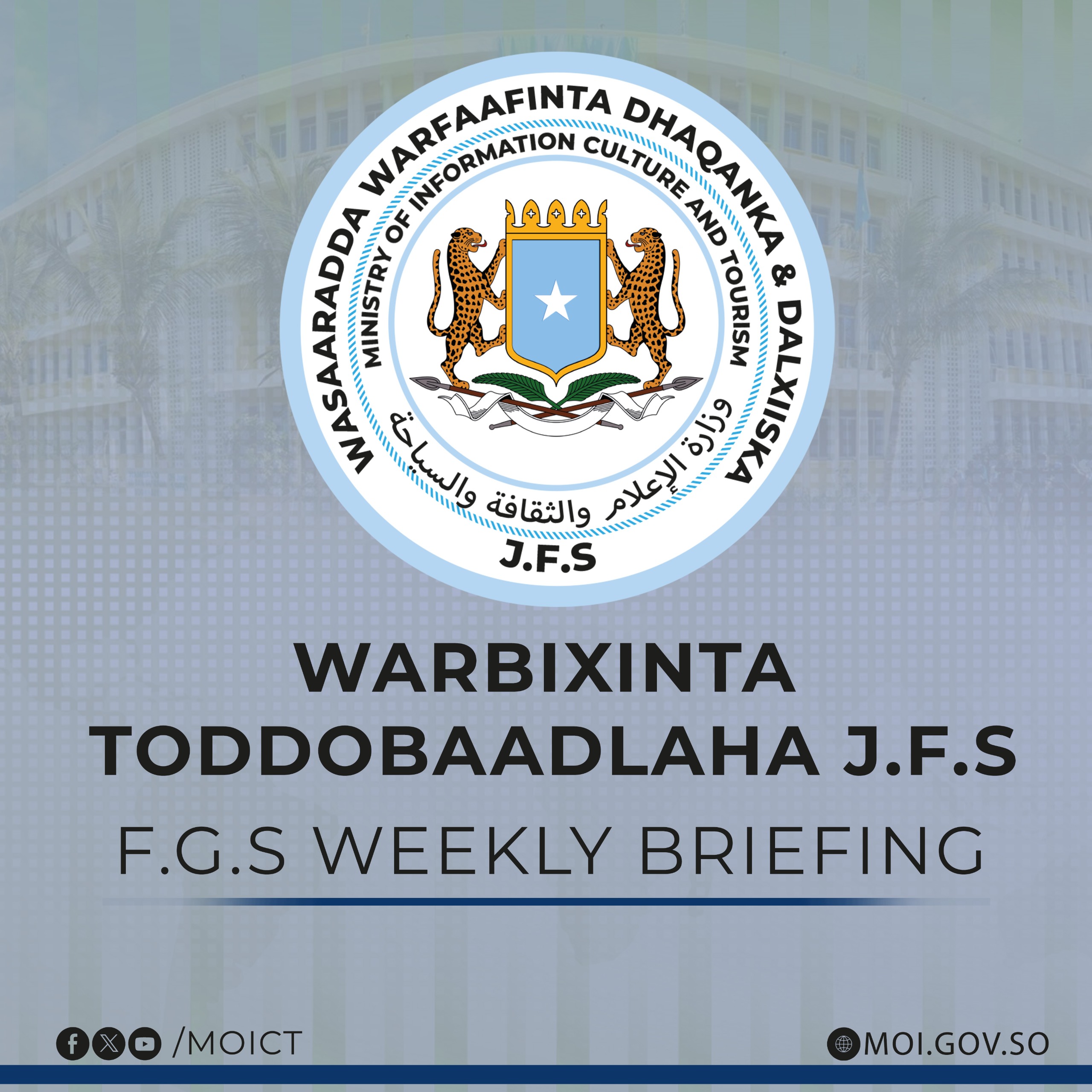 Federal Government of Somalia’s Weekly Briefing Mogadishu, Friday, 19th September, 2025 1- President Hassan Sheikh Mohamud participated in the three-year Government Performance Exhibition (2022–2025) held in Mogadishu. 2- President Hassan Sheikh Mohamud stated that Prime Minister Hamsa Abdi Barre and his cabinet had implemented important plans and laws for the state-building of Somalia. 3- President […]